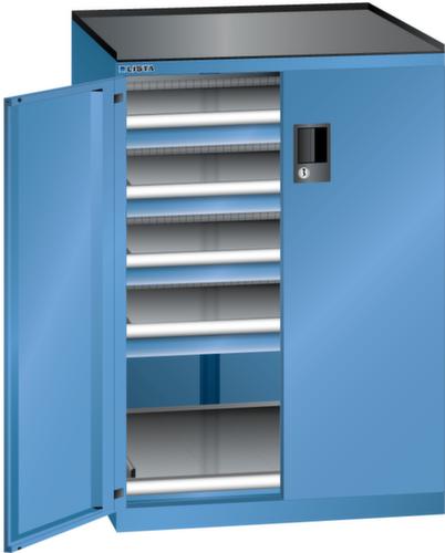 "longDescription": "LISTA Schubladenschrank mit Flügeltüren, Lista Einheit: 36x36E, BxTxH: 717x753x1020mm, Schubladen-Nutzfläche BxT: 612x612mm, Anzahl Schubladen: 4x75mm (75kg), Anzahl Auszugböden: 1x75mm (75kg), Schliessart: Code Lock, elektronisches Zahlenschloss mit 10 Ziffern für 4- bis 6-stellige Codes, bis 100 Codes, Ausstattung: Abrollrand 3-seitig, 20mm hoch, inklusive Rillenmatte, Farbe Gehäuse: Capriblau RAL 5019, Farbe Türen/Schubladen: Capriblau RAL 5019. Allgemeine Vorteile der LISTA Schubladenschränke. Ideal für grosses und schweres Lagergut bis 200 kg pro Schublade mit Auszugböden zur flächenbündigen Lagerung. Jederzeit anpassbar an neues Lagergut durch den flexiblen Ein- und Umbau von Schubladen, Auszugböden und Verstellböden im 25-mm-Raster. Einfaches Versetzen mittels Hubwagen dank Staplersockel auch bei beladenem Schrank<br>",