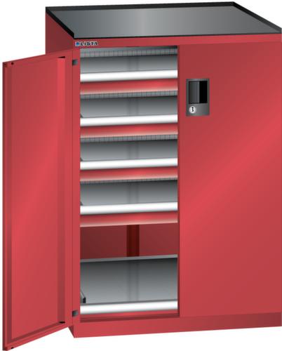 "longDescription": "LISTA Schubladenschrank mit Flügeltüren, Lista Einheit: 36x36E, BxTxH: 717x753x1020mm, Schubladen-Nutzfläche BxT: 612x612mm, Anzahl Schubladen: 4x75mm (200kg), Anzahl Auszugböden: 1x75mm (200kg), Schliessart: Key Lock, Standard-Schliessung mit Wechselzylinder inkl. 2 Schlüsseln mit Schlüsselnummer, Ausstattung: Abrollrand 3-seitig, 20mm hoch, inklusive Rillenmatte, Farbe Gehäuse: Rubinrot RAL 3003, Farbe Türen/Schubladen: Rubinrot RAL 3003. Allgemeine Vorteile der LISTA Schubladenschränke. Ideal für grosses und schweres Lagergut bis 200 kg pro Schublade mit Auszugböden zur flächenbündigen Lagerung. Jederzeit anpassbar an neues Lagergut durch den flexiblen Ein- und Umbau von Schubladen, Auszugböden und Verstellböden im 25-mm-Raster. Einfaches Versetzen mittels Hubwagen dank Staplersockel auch bei beladenem Schrank<br>",
