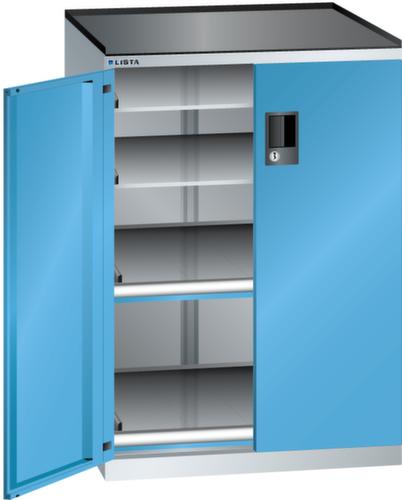 "longDescription": "LISTA Schubladenschrank mit Flügeltüren, Lista Einheit: 36x36E, BxTxH: 717x753x1020mm, Schubladen-Nutzfläche BxT: 612x612mm, Anzahl Auszugböden: 2x75mm (200kg), Anzahl Verstellböden: 2 (200kg), Schliessart: Key Lock, Standard-Schliessung mit Wechselzylinder inkl. 2 Schlüsseln mit Schlüsselnummer, Ausstattung: Abrollrand 3-seitig, 20mm hoch, inklusive Rillenmatte, Farbe Gehäuse: Lichtgrau RAL 7035, Farbe Türen/Schubladen: Lichtblau RAL 5012. Allgemeine Vorteile der LISTA Schubladenschränke. Ideal für grosses und schweres Lagergut bis 200 kg pro Schublade mit Auszugböden zur flächenbündigen Lagerung. Jederzeit anpassbar an neues Lagergut durch den flexiblen Ein- und Umbau von Schubladen, Auszugböden und Verstellböden im 25-mm-Raster. Einfaches Versetzen mittels Hubwagen dank Staplersockel auch bei beladenem Schrank<br>",