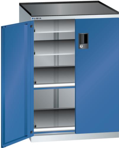"longDescription": "LISTA Schubladenschrank mit Flügeltüren, Lista Einheit: 36x36E, BxTxH: 717x753x1020mm, Schubladen-Nutzfläche BxT: 612x612mm, Anzahl Auszugböden: 2x75mm (200kg), Anzahl Verstellböden: 2 (200kg), Schliessart: Code Lock, elektronisches Zahlenschloss mit 10 Ziffern für 4- bis 6-stellige Codes, bis 100 Codes, Ausstattung: Abrollrand 3-seitig, 20mm hoch, inklusive Rillenmatte, Farbe Gehäuse: Lichtgrau RAL 7035, Farbe Türen/Schubladen: Signalblau RAL 5005. Allgemeine Vorteile der LISTA Schubladenschränke. Ideal für grosses und schweres Lagergut bis 200 kg pro Schublade mit Auszugböden zur flächenbündigen Lagerung. Jederzeit anpassbar an neues Lagergut durch den flexiblen Ein- und Umbau von Schubladen, Auszugböden und Verstellböden im 25-mm-Raster. Einfaches Versetzen mittels Hubwagen dank Staplersockel auch bei beladenem Schrank<br>",