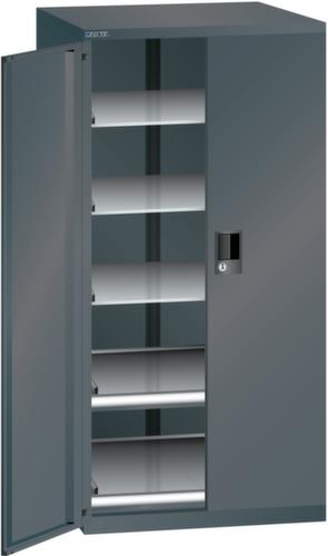 "longDescription": "LISTA Schubladenschrank mit Flügeltüren, Lista Einheit: 36x36E, BxTxH: 717x753x1450mm, Schubladen-Nutzfläche BxT: 612x612mm, Anzahl Auszugböden: 2x75mm (75kg), Anzahl Verstellböden: 3 (200kg), Schliessart: Key Lock, Standard-Schliessung mit Wechselzylinder inkl. 2 Schlüsseln mit Schlüsselnummer, Farbe Gehäuse: Schwarz NCS S 9000-N, Farbe Türen/Schubladen: Schwarz NCS S 9000-N. Allgemeine Vorteile der LISTA Schubladenschränke. Ideal für grosses und schweres Lagergut bis 200 kg pro Schublade mit Auszugböden zur flächenbündigen Lagerung. Jederzeit anpassbar an neues Lagergut durch den flexiblen Ein- und Umbau von Schubladen, Auszugböden und Verstellböden im 25-mm-Raster. Einfaches Versetzen mittels Hubwagen dank Staplersockel auch bei beladenem Schrank<br>",