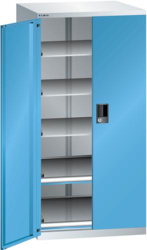 "longDescription": "LISTA Schubladenschrank mit Flügeltüren, Lista Einheit: 36x36E, BxTxH: 717x753x1450mm, Schubladen-Nutzfläche BxT: 612x612mm, Anzahl Auszugböden: 2x75mm (75kg), Anzahl Verstellböden: 3 (200kg), Schliessart: Key Lock, Standard-Schliessung mit Wechselzylinder inkl. 2 Schlüsseln mit Schlüsselnummer, Farbe Gehäuse: Lichtgrau RAL 7035, Farbe Türen/Schubladen: Lichtblau RAL 5012. Allgemeine Vorteile der LISTA Schubladenschränke. Ideal für grosses und schweres Lagergut bis 200 kg pro Schublade mit Auszugböden zur flächenbündigen Lagerung. Jederzeit anpassbar an neues Lagergut durch den flexiblen Ein- und Umbau von Schubladen, Auszugböden und Verstellböden im 25-mm-Raster. Einfaches Versetzen mittels Hubwagen dank Staplersockel auch bei beladenem Schrank<br>",