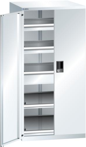 "longDescription": "LISTA Schubladenschrank mit Flügeltüren, Lista Einheit: 36x36E, BxTxH: 717x753x1450mm, Schubladen-Nutzfläche BxT: 612x612mm, Anzahl Schubladen: 2x75mm (75kg), 1x150mm (75kg), Anzahl Auszugböden: 2x75mm (75kg), Schliessart: Code Lock, elektronisches Zahlenschloss mit 10 Ziffern für 4- bis 6-stellige Codes, bis 100 Codes, Farbe Gehäuse: Reinweiss RAL 9010, Farbe Türen/Schubladen: Reinweiss RAL 9010. Allgemeine Vorteile der LISTA Schubladenschränke. Ideal für grosses und schweres Lagergut bis 200 kg pro Schublade mit Auszugböden zur flächenbündigen Lagerung. Jederzeit anpassbar an neues Lagergut durch den flexiblen Ein- und Umbau von Schubladen, Auszugböden und Verstellböden im 25-mm-Raster. Einfaches Versetzen mittels Hubwagen dank Staplersockel auch bei beladenem Schrank<br>",