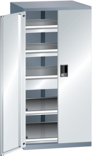 "longDescription": "LISTA Schubladenschrank mit Flügeltüren, Lista Einheit: 36x36E, BxTxH: 717x753x1450mm, Schubladen-Nutzfläche BxT: 612x612mm, Anzahl Schubladen: 2x75mm (75kg), 1x150mm (75kg), Anzahl Auszugböden: 2x75mm (75kg), Schliessart: Code Lock, elektronisches Zahlenschloss mit 10 Ziffern für 4- bis 6-stellige Codes, bis 100 Codes, Farbe Gehäuse: Grau metallic NCS S 6502-B, Farbe Türen/Schubladen: Lichtgrau RAL 7035. Allgemeine Vorteile der LISTA Schubladenschränke. Ideal für grosses und schweres Lagergut bis 200 kg pro Schublade mit Auszugböden zur flächenbündigen Lagerung. Jederzeit anpassbar an neues Lagergut durch den flexiblen Ein- und Umbau von Schubladen, Auszugböden und Verstellböden im 25-mm-Raster. Einfaches Versetzen mittels Hubwagen dank Staplersockel auch bei beladenem Schrank<br>",
