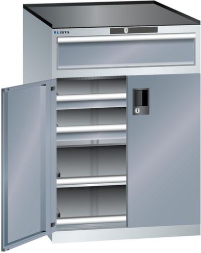 "longDescription": "LISTA Schubladenschrank mit Flügeltüren, Lista Einheit: 36x36E, BxTxH: 717x753x1020mm, Schubladen-Nutzfläche BxT: 612x612mm, Anzahl Schubladen: oben: 1x150mm (200kg), unten: 2x75mm (200kg), Anzahl Auszugböden: 2x75mm (200kg), Schliessart: Key Lock, Standard-Schliessung mit Wechselzylinder inkl. 2 Schlüsseln mit Schlüsselnummer, Ausstattung: Abrollrand 3-seitig, 20mm hoch, inklusive Rillenmatte, Farbe Gehäuse: Lichtgrau RAL 7035, Farbe Türen/Schubladen: Grau metallic NCS S 6502-B. Allgemeine Vorteile der LISTA Schubladenschränke. Ideal für grosses und schweres Lagergut bis 200 kg pro Schublade mit Auszugböden zur flächenbündigen Lagerung. Jederzeit anpassbar an neues Lagergut durch den flexiblen Ein- und Umbau von Schubladen, Auszugböden und Verstellböden im 25-mm-Raster. Einfaches Versetzen mittels Hubwagen dank Staplersockel auch bei beladenem Schrank<br>",