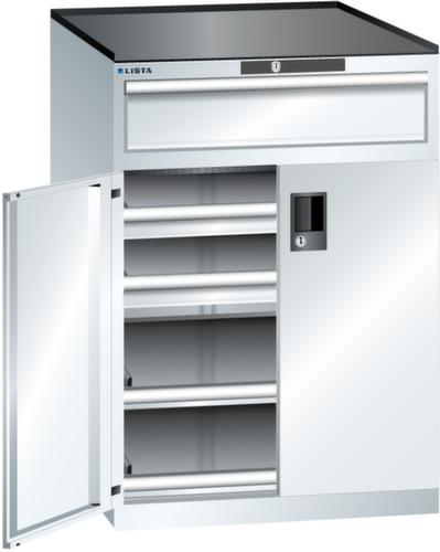 "longDescription": "LISTA Schubladenschrank mit Flügeltüren, Lista Einheit: 36x36E, BxTxH: 717x753x1020mm, Schubladen-Nutzfläche BxT: 612x612mm, Anzahl Schubladen: oben: 1x150mm (200kg), unten: 2x75mm (200kg), Anzahl Auszugböden: 2x75mm (200kg), Schliessart: Code Lock, elektronisches Zahlenschloss mit 10 Ziffern für 4- bis 6-stellige Codes, bis 100 Codes, Ausstattung: Abrollrand 3-seitig, 20mm hoch, inklusive Rillenmatte, Farbe Gehäuse: Reinweiss RAL 9010, Farbe Türen/Schubladen: Reinweiss RAL 9010. Allgemeine Vorteile der LISTA Schubladenschränke. Ideal für grosses und schweres Lagergut bis 200 kg pro Schublade mit Auszugböden zur flächenbündigen Lagerung. Jederzeit anpassbar an neues Lagergut durch den flexiblen Ein- und Umbau von Schubladen, Auszugböden und Verstellböden im 25-mm-Raster. Einfaches Versetzen mittels Hubwagen dank Staplersockel auch bei beladenem Schrank<br>",