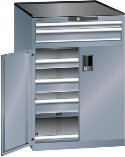 "longDescription": "LISTA Schubladenschrank mit Flügeltüren, Lista Einheit: 36x36E, BxTxH: 717x753x1020mm, Schubladen-Nutzfläche BxT: 612x612mm, Anzahl Schubladen: oben: 1x50mm (75kg), 1x100mm (75kg), unten: 1x75mm (75kg), 2x100mm (75kg), Anzahl Auszugböden: 1x75mm (75kg), Schliessart: Key Lock, Standard-Schliessung mit Wechselzylinder inkl. 2 Schlüsseln mit Schlüsselnummer, Ausstattung: Abrollrand 3-seitig, 20mm hoch, inklusive Rillenmatte, Farbe Gehäuse: Grau metallic NCS S 6502-B, Farbe Türen/Schubladen: Grau metallic NCS S 6502-B. Allgemeine Vorteile der LISTA Schubladenschränke. Ideal für grosses und schweres Lagergut bis 200 kg pro Schublade mit Auszugböden zur flächenbündigen Lagerung. Jederzeit anpassbar an neues Lagergut durch den flexiblen Ein- und Umbau von Schubladen, Auszugböden und Verstellböden im 25-mm-Raster. Einfaches Versetzen mittels Hubwagen dank Staplersockel auch bei beladenem Schrank<br>",
