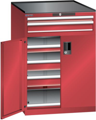 "longDescription": "LISTA Schubladenschrank mit Flügeltüren, Lista Einheit: 36x36E, BxTxH: 717x753x1020mm, Schubladen-Nutzfläche BxT: 612x612mm, Anzahl Schubladen: oben: 1x50mm (75kg), 1x100mm (75kg), unten: 1x75mm (75kg), 2x100mm (75kg), Anzahl Auszugböden: 1x75mm (75kg), Schliessart: Key Lock, Standard-Schliessung mit Wechselzylinder inkl. 2 Schlüsseln mit Schlüsselnummer, Ausstattung: Abrollrand 3-seitig, 20mm hoch, inklusive Rillenmatte, Farbe Gehäuse: Rubinrot RAL 3003, Farbe Türen/Schubladen: Rubinrot RAL 3003. Allgemeine Vorteile der LISTA Schubladenschränke. Ideal für grosses und schweres Lagergut bis 200 kg pro Schublade mit Auszugböden zur flächenbündigen Lagerung. Jederzeit anpassbar an neues Lagergut durch den flexiblen Ein- und Umbau von Schubladen, Auszugböden und Verstellböden im 25-mm-Raster. Einfaches Versetzen mittels Hubwagen dank Staplersockel auch bei beladenem Schrank<br>",
