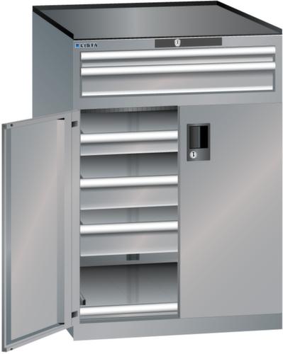 "longDescription": "LISTA Schubladenschrank mit Flügeltüren, Lista Einheit: 36x36E, BxTxH: 717x753x1020mm, Schubladen-Nutzfläche BxT: 612x612mm, Anzahl Schubladen: oben: 1x50mm (200kg), 1x100mm (200kg), unten: 1x75mm (200kg), 2x100mm (200kg), Anzahl Auszugböden: 1x75mm (200kg), Schliessart: Key Lock, Standard-Schliessung mit Wechselzylinder inkl. 2 Schlüsseln mit Schlüsselnummer, Ausstattung: Abrollrand 3-seitig, 20mm hoch, inklusive Rillenmatte, Farbe Gehäuse: Taubengrau NCS S 4502-B, Farbe Türen/Schubladen: Taubengrau NCS S 4502-B. Allgemeine Vorteile der LISTA Schubladenschränke. Ideal für grosses und schweres Lagergut bis 200 kg pro Schublade mit Auszugböden zur flächenbündigen Lagerung. Jederzeit anpassbar an neues Lagergut durch den flexiblen Ein- und Umbau von Schubladen, Auszugböden und Verstellböden im 25-mm-Raster. Einfaches Versetzen mittels Hubwagen dank Staplersockel auch bei beladenem Schrank<br>",