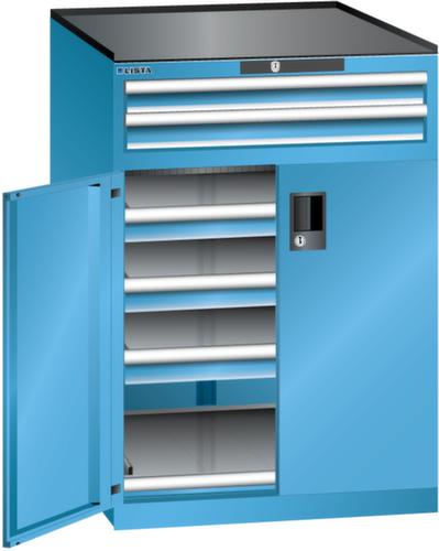 "longDescription": "LISTA Schubladenschrank mit Flügeltüren, Lista Einheit: 36x36E, BxTxH: 717x753x1020mm, Schubladen-Nutzfläche BxT: 612x612mm, Anzahl Schubladen: oben: 2x75mm (75kg), unten: 3x75mm (75kg), Anzahl Auszugböden: 1x75mm (75kg), Schliessart: Key Lock, Standard-Schliessung mit Wechselzylinder inkl. 2 Schlüsseln mit Schlüsselnummer, Ausstattung: Abrollrand 3-seitig, 20mm hoch, inklusive Rillenmatte, Farbe Gehäuse: Lichtblau RAL 5012, Farbe Türen/Schubladen: Lichtblau RAL 5012. Allgemeine Vorteile der LISTA Schubladenschränke. Ideal für grosses und schweres Lagergut bis 200 kg pro Schublade mit Auszugböden zur flächenbündigen Lagerung. Jederzeit anpassbar an neues Lagergut durch den flexiblen Ein- und Umbau von Schubladen, Auszugböden und Verstellböden im 25-mm-Raster. Einfaches Versetzen mittels Hubwagen dank Staplersockel auch bei beladenem Schrank<br>",