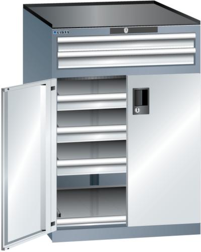 "longDescription": "LISTA Schubladenschrank mit Flügeltüren, Lista Einheit: 36x36E, BxTxH: 717x753x1020mm, Schubladen-Nutzfläche BxT: 612x612mm, Anzahl Schubladen: oben: 2x75mm (200kg), unten: 3x75mm (200kg), Anzahl Auszugböden: 1x75mm (200kg), Schliessart: Key Lock, Standard-Schliessung mit Wechselzylinder inkl. 2 Schlüsseln mit Schlüsselnummer, Ausstattung: Abrollrand 3-seitig, 20mm hoch, inklusive Rillenmatte, Farbe Gehäuse: Grau metallic NCS S 6502-B, Farbe Türen/Schubladen: Lichtgrau RAL 7035. Allgemeine Vorteile der LISTA Schubladenschränke. Ideal für grosses und schweres Lagergut bis 200 kg pro Schublade mit Auszugböden zur flächenbündigen Lagerung. Jederzeit anpassbar an neues Lagergut durch den flexiblen Ein- und Umbau von Schubladen, Auszugböden und Verstellböden im 25-mm-Raster. Einfaches Versetzen mittels Hubwagen dank Staplersockel auch bei beladenem Schrank<br>",