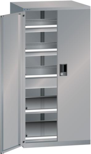 "longDescription": "LISTA Schubladenschrank mit Flügeltüren, Lista Einheit: 36x36E, BxTxH: 717x753x1450mm, Schubladen-Nutzfläche BxT: 612x612mm, Anzahl Schubladen: 2x75mm (200kg), 1x150mm (200kg), Anzahl Auszugböden: 2x75mm (200kg), Schliessart: Key Lock, Standard-Schliessung mit Wechselzylinder inkl. 2 Schlüsseln mit Schlüsselnummer, Farbe Gehäuse: Taubengrau NCS S 4502-B, Farbe Türen/Schubladen: Taubengrau NCS S 4502-B. Allgemeine Vorteile der LISTA Schubladenschränke. Ideal für grosses und schweres Lagergut bis 200 kg pro Schublade mit Auszugböden zur flächenbündigen Lagerung. Jederzeit anpassbar an neues Lagergut durch den flexiblen Ein- und Umbau von Schubladen, Auszugböden und Verstellböden im 25-mm-Raster. Einfaches Versetzen mittels Hubwagen dank Staplersockel auch bei beladenem Schrank<br>",