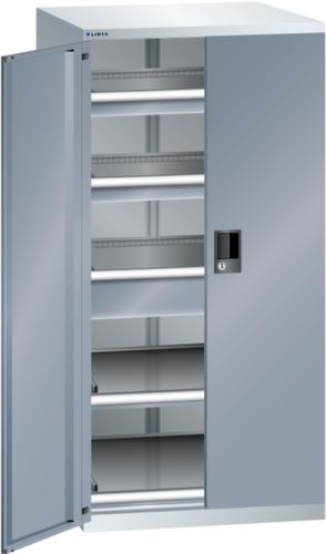 "longDescription": "LISTA Schubladenschrank mit Flügeltüren, Lista Einheit: 36x36E, BxTxH: 717x753x1450mm, Schubladen-Nutzfläche BxT: 612x612mm, Anzahl Schubladen: 2x75mm (200kg), 1x150mm (200kg), Anzahl Auszugböden: 2x75mm (200kg), Schliessart: Key Lock, Standard-Schliessung mit Wechselzylinder inkl. 2 Schlüsseln mit Schlüsselnummer, Farbe Gehäuse: Lichtgrau RAL 7035, Farbe Türen/Schubladen: Grau metallic NCS S 6502-B. Allgemeine Vorteile der LISTA Schubladenschränke. Ideal für grosses und schweres Lagergut bis 200 kg pro Schublade mit Auszugböden zur flächenbündigen Lagerung. Jederzeit anpassbar an neues Lagergut durch den flexiblen Ein- und Umbau von Schubladen, Auszugböden und Verstellböden im 25-mm-Raster. Einfaches Versetzen mittels Hubwagen dank Staplersockel auch bei beladenem Schrank<br>",