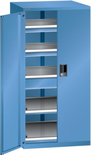 "longDescription": "LISTA Schubladenschrank mit Flügeltüren, Lista Einheit: 36x36E, BxTxH: 717x753x1450mm, Schubladen-Nutzfläche BxT: 612x612mm, Anzahl Schubladen: 2x75mm (200kg), 1x150mm (200kg), Anzahl Auszugböden: 2x75mm (200kg), Schliessart: Code Lock, elektronisches Zahlenschloss mit 10 Ziffern für 4- bis 6-stellige Codes, bis 100 Codes, Farbe Gehäuse: Capriblau RAL 5019, Farbe Türen/Schubladen: Capriblau RAL 5019. Allgemeine Vorteile der LISTA Schubladenschränke. Ideal für grosses und schweres Lagergut bis 200 kg pro Schublade mit Auszugböden zur flächenbündigen Lagerung. Jederzeit anpassbar an neues Lagergut durch den flexiblen Ein- und Umbau von Schubladen, Auszugböden und Verstellböden im 25-mm-Raster. Einfaches Versetzen mittels Hubwagen dank Staplersockel auch bei beladenem Schrank<br>",
