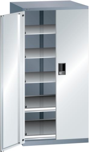 "longDescription": "LISTA Schubladenschrank mit Flügeltüren, Lista Einheit: 36x36E, BxTxH: 717x753x1450mm, Schubladen-Nutzfläche BxT: 612x612mm, Anzahl Auszugböden: 2x75mm (200kg), Anzahl Verstellböden: 3 (200kg), Schliessart: Key Lock, Standard-Schliessung mit Wechselzylinder inkl. 2 Schlüsseln mit Schlüsselnummer, Farbe Gehäuse: Grau metallic NCS S 6502-B, Farbe Türen/Schubladen: Lichtgrau RAL 7035. Allgemeine Vorteile der LISTA Schubladenschränke. Ideal für grosses und schweres Lagergut bis 200 kg pro Schublade mit Auszugböden zur flächenbündigen Lagerung. Jederzeit anpassbar an neues Lagergut durch den flexiblen Ein- und Umbau von Schubladen, Auszugböden und Verstellböden im 25-mm-Raster. Einfaches Versetzen mittels Hubwagen dank Staplersockel auch bei beladenem Schrank<br>",