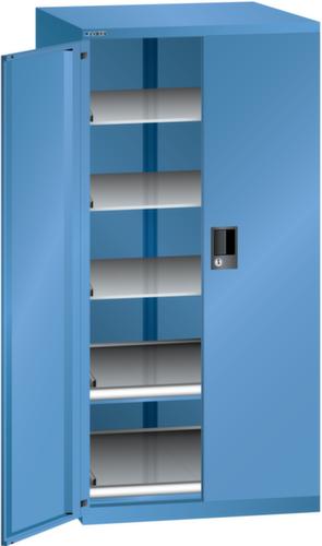 "longDescription": "LISTA Schubladenschrank mit Flügeltüren, Lista Einheit: 36x36E, BxTxH: 717x753x1450mm, Schubladen-Nutzfläche BxT: 612x612mm, Anzahl Auszugböden: 2x75mm (200kg), Anzahl Verstellböden: 3 (200kg), Schliessart: Code Lock, elektronisches Zahlenschloss mit 10 Ziffern für 4- bis 6-stellige Codes, bis 100 Codes, Farbe Gehäuse: Capriblau RAL 5019, Farbe Türen/Schubladen: Capriblau RAL 5019. Allgemeine Vorteile der LISTA Schubladenschränke. Ideal für grosses und schweres Lagergut bis 200 kg pro Schublade mit Auszugböden zur flächenbündigen Lagerung. Jederzeit anpassbar an neues Lagergut durch den flexiblen Ein- und Umbau von Schubladen, Auszugböden und Verstellböden im 25-mm-Raster. Einfaches Versetzen mittels Hubwagen dank Staplersockel auch bei beladenem Schrank<br>",