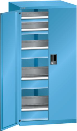 "longDescription": "LISTA Schubladenschrank mit Flügeltüren, Lista Einheit: 36x36E, BxTxH: 717x753x1450mm, Schubladen-Nutzfläche BxT: 612x612mm, Anzahl Schubladen: 2x75mm (75kg), 3x150mm (75kg), Schliessart: Key Lock, Standard-Schliessung mit Wechselzylinder inkl. 2 Schlüsseln mit Schlüsselnummer, Farbe Gehäuse: Lichtblau RAL 5012, Farbe Türen/Schubladen: Lichtblau RAL 5012. Allgemeine Vorteile der LISTA Schubladenschränke. Ideal für grosses und schweres Lagergut bis 200 kg pro Schublade mit Auszugböden zur flächenbündigen Lagerung. Jederzeit anpassbar an neues Lagergut durch den flexiblen Ein- und Umbau von Schubladen, Auszugböden und Verstellböden im 25-mm-Raster. Einfaches Versetzen mittels Hubwagen dank Staplersockel auch bei beladenem Schrank<br>",