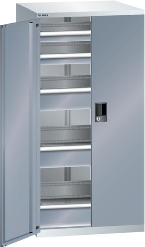 "longDescription": "LISTA Schubladenschrank mit Flügeltüren, Lista Einheit: 36x36E, BxTxH: 717x753x1450mm, Schubladen-Nutzfläche BxT: 612x612mm, Anzahl Schubladen: 2x75mm (75kg), 3x150mm (75kg), Schliessart: Key Lock, Standard-Schliessung mit Wechselzylinder inkl. 2 Schlüsseln mit Schlüsselnummer, Farbe Gehäuse: Lichtgrau RAL 7035, Farbe Türen/Schubladen: Grau metallic NCS S 6502-B. Allgemeine Vorteile der LISTA Schubladenschränke. Ideal für grosses und schweres Lagergut bis 200 kg pro Schublade mit Auszugböden zur flächenbündigen Lagerung. Jederzeit anpassbar an neues Lagergut durch den flexiblen Ein- und Umbau von Schubladen, Auszugböden und Verstellböden im 25-mm-Raster. Einfaches Versetzen mittels Hubwagen dank Staplersockel auch bei beladenem Schrank<br>",