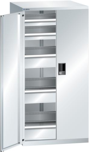 "longDescription": "LISTA Schubladenschrank mit Flügeltüren, Lista Einheit: 36x36E, BxTxH: 717x753x1450mm, Schubladen-Nutzfläche BxT: 612x612mm, Anzahl Schubladen: 2x75mm (200kg), 3x150mm (200kg), Schliessart: Key Lock, Standard-Schliessung mit Wechselzylinder inkl. 2 Schlüsseln mit Schlüsselnummer, Farbe Gehäuse: Lichtgrau RAL 7035, Farbe Türen/Schubladen: Lichtgrau RAL 7035. Allgemeine Vorteile der LISTA Schubladenschränke. Ideal für grosses und schweres Lagergut bis 200 kg pro Schublade mit Auszugböden zur flächenbündigen Lagerung. Jederzeit anpassbar an neues Lagergut durch den flexiblen Ein- und Umbau von Schubladen, Auszugböden und Verstellböden im 25-mm-Raster. Einfaches Versetzen mittels Hubwagen dank Staplersockel auch bei beladenem Schrank<br>",