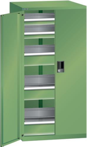 "longDescription": "LISTA Schubladenschrank mit Flügeltüren, Lista Einheit: 36x36E, BxTxH: 717x753x1450mm, Schubladen-Nutzfläche BxT: 612x612mm, Anzahl Schubladen: 2x75mm (200kg), 3x150mm (200kg), Schliessart: Code Lock, elektronisches Zahlenschloss mit 10 Ziffern für 4- bis 6-stellige Codes, bis 100 Codes, Farbe Gehäuse: Resedagrün RAL 6011, Farbe Türen/Schubladen: Resedagrün RAL 6011. Allgemeine Vorteile der LISTA Schubladenschränke. Ideal für grosses und schweres Lagergut bis 200 kg pro Schublade mit Auszugböden zur flächenbündigen Lagerung. Jederzeit anpassbar an neues Lagergut durch den flexiblen Ein- und Umbau von Schubladen, Auszugböden und Verstellböden im 25-mm-Raster. Einfaches Versetzen mittels Hubwagen dank Staplersockel auch bei beladenem Schrank<br>",