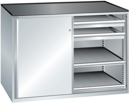 "longDescription": "LISTA Schubladenschrank mit Schiebetüren, Lista Einheit: 2 x 36x36E, BxTxH: 1430x780x1020mm, Schubladen-Nutzfläche BxT: 612x612mm, Anzahl Schubladen: 4x75mm (75kg), Anzahl Auszugböden: 4x75mm (75kg), Schliessart: Key Lock, Standard-Schliessung mit Wechselzylinder inkl. 2 Schlüsseln mit Schlüsselnummer, Ausstattung: Abrollrand 3-seitig, 20mm hoch, inklusive Rillenmatte, Farbe Gehäuse: Lichtgrau RAL 7035, Farbe Türen/Schubladen: Lichtgrau RAL 7035. Allgemeine Vorteile der LISTA Schubladenschränke. Ideal für grosses und schweres Lagergut bis 200 kg pro Schublade mit Auszugböden zur flächenbündigen Lagerung. Jederzeit anpassbar an neues Lagergut durch den flexiblen Ein- und Umbau von Schubladen, Auszugböden und Verstellböden im 25-mm-Raster. Einfaches Versetzen mittels Hubwagen dank Staplersockel auch bei beladenem Schrank<br>",