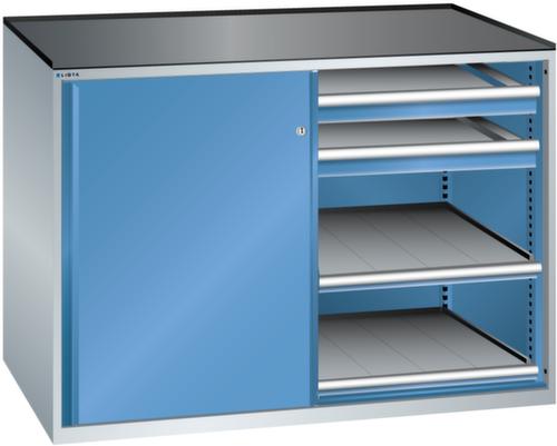 "longDescription": "LISTA Schubladenschrank mit Schiebetüren, Lista Einheit: 2 x 36x36E, BxTxH: 1430x780x1020mm, Schubladen-Nutzfläche BxT: 612x612mm, Anzahl Schubladen: 4x75mm (200kg), Anzahl Auszugböden: 4x75mm (200kg), Schliessart: Key Lock, Standard-Schliessung mit Wechselzylinder inkl. 2 Schlüsseln mit Schlüsselnummer, Ausstattung: Abrollrand 3-seitig, 20mm hoch, inklusive Rillenmatte, Farbe Gehäuse: Capriblau RAL 5019, Farbe Türen/Schubladen: Capriblau RAL 5019. Allgemeine Vorteile der LISTA Schubladenschränke. Ideal für grosses und schweres Lagergut bis 200 kg pro Schublade mit Auszugböden zur flächenbündigen Lagerung. Jederzeit anpassbar an neues Lagergut durch den flexiblen Ein- und Umbau von Schubladen, Auszugböden und Verstellböden im 25-mm-Raster. Einfaches Versetzen mittels Hubwagen dank Staplersockel auch bei beladenem Schrank<br>",