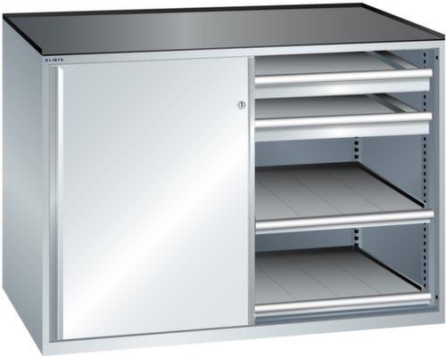 "longDescription": "LISTA Schubladenschrank mit Schiebetüren, Lista Einheit: 2 x 36x36E, BxTxH: 1430x780x1020mm, Schubladen-Nutzfläche BxT: 612x612mm, Anzahl Schubladen: 4x75mm (200kg), Anzahl Auszugböden: 4x75mm (200kg), Schliessart: Key Lock, Standard-Schliessung mit Wechselzylinder inkl. 2 Schlüsseln mit Schlüsselnummer, Ausstattung: Abrollrand 3-seitig, 20mm hoch, inklusive Rillenmatte, Farbe Gehäuse: Grau metallic NCS S 6502-B, Farbe Türen/Schubladen: Lichtgrau RAL 7035. Allgemeine Vorteile der LISTA Schubladenschränke. Ideal für grosses und schweres Lagergut bis 200 kg pro Schublade mit Auszugböden zur flächenbündigen Lagerung. Jederzeit anpassbar an neues Lagergut durch den flexiblen Ein- und Umbau von Schubladen, Auszugböden und Verstellböden im 25-mm-Raster. Einfaches Versetzen mittels Hubwagen dank Staplersockel auch bei beladenem Schrank<br>",
