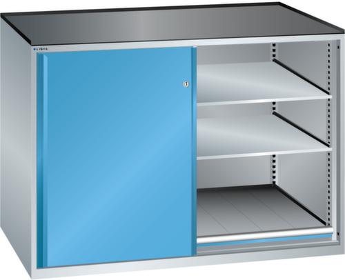 "longDescription": "LISTA Schubladenschrank mit Schiebetüren, Lista Einheit: 2 x 36x36E, BxTxH: 1430x780x1020mm, Schubladen-Nutzfläche BxT: 612x612mm, Anzahl Auszugböden: 2x75mm (75kg), Anzahl Verstellböden: 4 (200kg), Schliessart: Key Lock, Standard-Schliessung mit Wechselzylinder inkl. 2 Schlüsseln mit Schlüsselnummer, Ausstattung: Abrollrand 3-seitig, 20mm hoch, inklusive Rillenmatte, Farbe Gehäuse: Lichtgrau RAL 7035, Farbe Türen/Schubladen: Lichtblau RAL 5012. Allgemeine Vorteile der LISTA Schubladenschränke. Ideal für grosses und schweres Lagergut bis 200 kg pro Schublade mit Auszugböden zur flächenbündigen Lagerung. Jederzeit anpassbar an neues Lagergut durch den flexiblen Ein- und Umbau von Schubladen, Auszugböden und Verstellböden im 25-mm-Raster. Einfaches Versetzen mittels Hubwagen dank Staplersockel auch bei beladenem Schrank<br>",