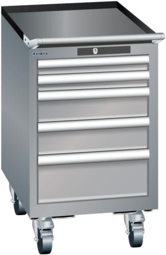 "longDescription": "LISTA Schubladenschrank mobil, Lista Einheit: 18x27E, BxTxH: 411x572x723mm, Schubladen-Nutzfläche BxT: 306x459mm, Anzahl Schubladen: 5, Anzahl Fronthöhen (Tragkraft): 2x50mm (75kg), 2x100mm (75kg), 1x150mm (75kg), Schliessart: Code Lock, elektronisches Zahlenschloss mit 10 Ziffern für 4- bis 6-stellige Codes, bis 100 Codes, Farbe Gehäuse: Taubengrau NCS S 4502-B, Farbe Schubladen: Taubengrau NCS S 4502-B. Höchste Stabilität: Gehäuse bis 4t belastbar, Schubladen mit 75 oder 200 kg Tragkraft. Maximale Ausnutzung dank Vollauszug und optimaler Mantelhöhe der Schubladen. Exzellente Schutzeigenschaften gegen Schmutz, Flüssigkeiten und mechanische Beanspruchung durch geschlossenes Gehäuse mit schlag- und abriebfester Oberfläche. Überzeugende Sicherheit: Aushebesicherung gegen Herausfallen der Schubladen und Einzelschubladensperre als Kippschutz. Korrosionsschutz durch Elektrophorese-Tauchlackierung und umweltfreundlichen Pulverlack. Optimale Ordnung und Organisation dank speziellem LISTA-Einteilungsmaterial für jeden Zweck und gelochter, geschlitzter Schubladen. Professionelle Beschriftung mit Beschriftungssoftware LISTA Script und hochklappbarer Griffleiste zum Einlegen der Etiketten. Perfekte Laufruhe durch traversenlos geführten Differenzialauszug. Flexible Anpassungsmöglichkeiten durch vorperforierte Löcher für Tischplatten (Punchout), Rollen, Schubladen, Schliesssysteme für einfaches Um- und Nachrüsten<br>",