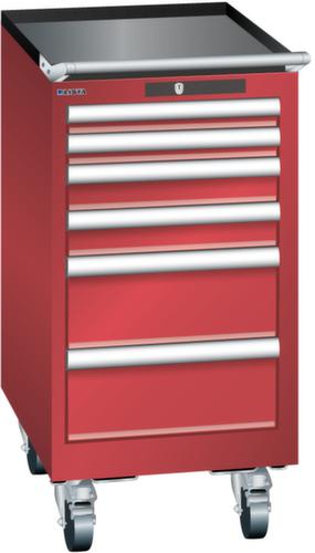 "longDescription": "LISTA Schubladenschrank mobil, Lista Einheit: 18x27E, BxTxH: 411x572x840mm, Schubladen-Nutzfläche BxT: 306x459mm, Anzahl Schubladen: 6, Anzahl Fronthöhen (Tragkraft): 2x50mm (75kg), 2x75mm (75kg), 2x150mm (75kg), Schliessart: Key Lock, Standard-Schliessung mit Wechselyzlinder inkl. 2 Schlüsseln mit Schlüsselnummer, Farbe Gehäuse: Rubinrot RAL 3003, Farbe Schubladen: Rubinrot RAL 3003. Höchste Stabilität: Gehäuse bis 4t belastbar, Schubladen mit 75 oder 200 kg Tragkraft. Maximale Ausnutzung dank Vollauszug und optimaler Mantelhöhe der Schubladen. Exzellente Schutzeigenschaften gegen Schmutz, Flüssigkeiten und mechanische Beanspruchung durch geschlossenes Gehäuse mit schlag- und abriebfester Oberfläche. Überzeugende Sicherheit: Aushebesicherung gegen Herausfallen der Schubladen und Einzelschubladensperre als Kippschutz. Korrosionsschutz durch Elektrophorese-Tauchlackierung und umweltfreundlichen Pulverlack. Optimale Ordnung und Organisation dank speziellem LISTA-Einteilungsmaterial für jeden Zweck und gelochter, geschlitzter Schubladen. Professionelle Beschriftung mit Beschriftungssoftware LISTA Script und hochklappbarer Griffleiste zum Einlegen der Etiketten. Perfekte Laufruhe durch traversenlos geführten Differenzialauszug. Flexible Anpassungsmöglichkeiten durch vorperforierte Löcher für Tischplatten (Punchout), Rollen, Schubladen, Schliesssysteme für einfaches Um- und Nachrüsten<br>",