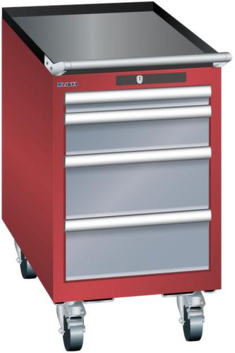 "longDescription": "LISTA Schubladenschrank mobil, Lista Einheit: 18x36E, BxTxH: 411x725x723mm, Schubladen-Nutzfläche BxT: 306x612mm, Anzahl Schubladen: 4, Anzahl Fronthöhen (Tragkraft): 1x50mm (75kg), 1x100mm (75kg), 2x150mm (75kg), Schliessart: Key Lock, Standard-Schliessung mit Wechselyzlinder inkl. 2 Schlüsseln mit Schlüsselnummer, Farbe Gehäuse: Rubinrot RAL 3003, Farbe Schubladen: Grau metallic NCS S 6502-B. Höchste Stabilität: Gehäuse bis 4t belastbar, Schubladen mit 75 oder 200 kg Tragkraft. Maximale Ausnutzung dank Vollauszug und optimaler Mantelhöhe der Schubladen. Exzellente Schutzeigenschaften gegen Schmutz, Flüssigkeiten und mechanische Beanspruchung durch geschlossenes Gehäuse mit schlag- und abriebfester Oberfläche. Überzeugende Sicherheit: Aushebesicherung gegen Herausfallen der Schubladen und Einzelschubladensperre als Kippschutz. Korrosionsschutz durch Elektrophorese-Tauchlackierung und umweltfreundlichen Pulverlack. Optimale Ordnung und Organisation dank speziellem LISTA-Einteilungsmaterial für jeden Zweck und gelochter, geschlitzter Schubladen. Professionelle Beschriftung mit Beschriftungssoftware LISTA Script und hochklappbarer Griffleiste zum Einlegen der Etiketten. Perfekte Laufruhe durch traversenlos geführten Differenzialauszug. Flexible Anpassungsmöglichkeiten durch vorperforierte Löcher für Tischplatten (Punchout), Rollen, Schubladen, Schliesssysteme für einfaches Um- und Nachrüsten<br>",