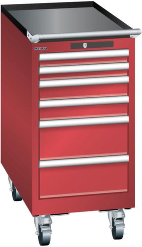 "longDescription": "LISTA Schubladenschrank mobil, Lista Einheit: 18x36E, BxTxH: 411x725x840mm, Schubladen-Nutzfläche BxT: 306x612mm, Anzahl Schubladen: 6, Anzahl Fronthöhen (Tragkraft): 2x50mm (75kg), 2x75mm (75kg), 2x150mm (75kg), Schliessart: Key Lock, Standard-Schliessung mit Wechselyzlinder inkl. 2 Schlüsseln mit Schlüsselnummer, Farbe Gehäuse: Rubinrot RAL 3003, Farbe Schubladen: Rubinrot RAL 3003. Höchste Stabilität: Gehäuse bis 4t belastbar, Schubladen mit 75 oder 200 kg Tragkraft. Maximale Ausnutzung dank Vollauszug und optimaler Mantelhöhe der Schubladen. Exzellente Schutzeigenschaften gegen Schmutz, Flüssigkeiten und mechanische Beanspruchung durch geschlossenes Gehäuse mit schlag- und abriebfester Oberfläche. Überzeugende Sicherheit: Aushebesicherung gegen Herausfallen der Schubladen und Einzelschubladensperre als Kippschutz. Korrosionsschutz durch Elektrophorese-Tauchlackierung und umweltfreundlichen Pulverlack. Optimale Ordnung und Organisation dank speziellem LISTA-Einteilungsmaterial für jeden Zweck und gelochter, geschlitzter Schubladen. Professionelle Beschriftung mit Beschriftungssoftware LISTA Script und hochklappbarer Griffleiste zum Einlegen der Etiketten. Perfekte Laufruhe durch traversenlos geführten Differenzialauszug. Flexible Anpassungsmöglichkeiten durch vorperforierte Löcher für Tischplatten (Punchout), Rollen, Schubladen, Schliesssysteme für einfaches Um- und Nachrüsten<br>",