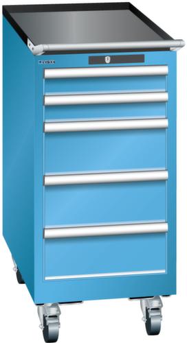 "longDescription": "LISTA Schubladenschrank mobil, Lista Einheit: 18x36E, BxTxH: 411x725x890mm, Schubladen-Nutzfläche BxT: 306x612mm, Anzahl Schubladen: 5, Anzahl Fronthöhen (Tragkraft): 2x75mm (75kg), 3x150mm (75kg), Schliessart: Key Lock, Standard-Schliessung mit Wechselyzlinder inkl. 2 Schlüsseln mit Schlüsselnummer, Farbe Gehäuse: Lichtblau RAL 5012, Farbe Schubladen: Lichtblau RAL 5012. Höchste Stabilität: Gehäuse bis 4t belastbar, Schubladen mit 75 oder 200 kg Tragkraft. Maximale Ausnutzung dank Vollauszug und optimaler Mantelhöhe der Schubladen. Exzellente Schutzeigenschaften gegen Schmutz, Flüssigkeiten und mechanische Beanspruchung durch geschlossenes Gehäuse mit schlag- und abriebfester Oberfläche. Überzeugende Sicherheit: Aushebesicherung gegen Herausfallen der Schubladen und Einzelschubladensperre als Kippschutz. Korrosionsschutz durch Elektrophorese-Tauchlackierung und umweltfreundlichen Pulverlack. Optimale Ordnung und Organisation dank speziellem LISTA-Einteilungsmaterial für jeden Zweck und gelochter, geschlitzter Schubladen. Professionelle Beschriftung mit Beschriftungssoftware LISTA Script und hochklappbarer Griffleiste zum Einlegen der Etiketten. Perfekte Laufruhe durch traversenlos geführten Differenzialauszug. Flexible Anpassungsmöglichkeiten durch vorperforierte Löcher für Tischplatten (Punchout), Rollen, Schubladen, Schliesssysteme für einfaches Um- und Nachrüsten<br>",