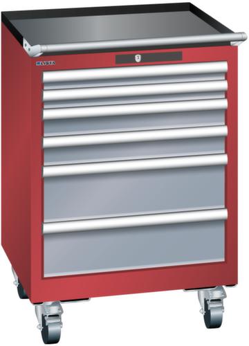 "longDescription": "LISTA Schubladenschrank mobil, Lista Einheit: 27x27E, BxTxH: 564x572x840mm, Schubladen-Nutzfläche BxT: 459x459mm, Anzahl Schubladen: 6, Anzahl Fronthöhen (Tragkraft): 2x50mm (75kg), 2x75mm (75kg), 2x150mm (75kg), Schliessart: Key Lock, Standard-Schliessung mit Wechselyzlinder inkl. 2 Schlüsseln mit Schlüsselnummer, Farbe Gehäuse: Rubinrot RAL 3003, Farbe Schubladen: Grau metallic NCS S 6502-B. Höchste Stabilität: Gehäuse bis 4t belastbar, Schubladen mit 75 oder 200 kg Tragkraft. Maximale Ausnutzung dank Vollauszug und optimaler Mantelhöhe der Schubladen. Exzellente Schutzeigenschaften gegen Schmutz, Flüssigkeiten und mechanische Beanspruchung durch geschlossenes Gehäuse mit schlag- und abriebfester Oberfläche. Überzeugende Sicherheit: Aushebesicherung gegen Herausfallen der Schubladen und Einzelschubladensperre als Kippschutz. Korrosionsschutz durch Elektrophorese-Tauchlackierung und umweltfreundlichen Pulverlack. Optimale Ordnung und Organisation dank speziellem LISTA-Einteilungsmaterial für jeden Zweck und gelochter, geschlitzter Schubladen. Professionelle Beschriftung mit Beschriftungssoftware LISTA Script und hochklappbarer Griffleiste zum Einlegen der Etiketten. Perfekte Laufruhe durch traversenlos geführten Differenzialauszug. Flexible Anpassungsmöglichkeiten durch vorperforierte Löcher für Tischplatten (Punchout), Rollen, Schubladen, Schliesssysteme für einfaches Um- und Nachrüsten<br>",