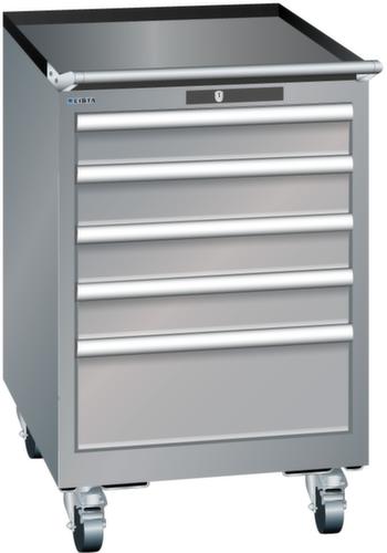 "longDescription": "LISTA Schubladenschrank mobil, Lista Einheit: 27x27E, BxTxH: 564x572x890mm, Schubladen-Nutzfläche BxT: 459x459mm, Anzahl Schubladen: 5, Anzahl Fronthöhen (Tragkraft): 4x100mm (75kg), 1x200mm (75kg), Schliessart: Key Lock, Standard-Schliessung mit Wechselyzlinder inkl. 2 Schlüsseln mit Schlüsselnummer, Farbe Gehäuse: Taubengrau NCS S 4502-B, Farbe Schubladen: Taubengrau NCS S 4502-B. Höchste Stabilität: Gehäuse bis 4t belastbar, Schubladen mit 75 oder 200 kg Tragkraft. Maximale Ausnutzung dank Vollauszug und optimaler Mantelhöhe der Schubladen. Exzellente Schutzeigenschaften gegen Schmutz, Flüssigkeiten und mechanische Beanspruchung durch geschlossenes Gehäuse mit schlag- und abriebfester Oberfläche. Überzeugende Sicherheit: Aushebesicherung gegen Herausfallen der Schubladen und Einzelschubladensperre als Kippschutz. Korrosionsschutz durch Elektrophorese-Tauchlackierung und umweltfreundlichen Pulverlack. Optimale Ordnung und Organisation dank speziellem LISTA-Einteilungsmaterial für jeden Zweck und gelochter, geschlitzter Schubladen. Professionelle Beschriftung mit Beschriftungssoftware LISTA Script und hochklappbarer Griffleiste zum Einlegen der Etiketten. Perfekte Laufruhe durch traversenlos geführten Differenzialauszug. Flexible Anpassungsmöglichkeiten durch vorperforierte Löcher für Tischplatten (Punchout), Rollen, Schubladen, Schliesssysteme für einfaches Um- und Nachrüsten<br>",