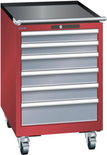 "longDescription": "LISTA Schubladenschrank mobil, Lista Einheit: 27x27E, BxTxH: 564x572x890mm, Schubladen-Nutzfläche BxT: 459x459mm, Anzahl Schubladen: 6, Anzahl Fronthöhen (Tragkraft): 2x 75mm (75kg), 3x100mm (75kg), 1x150mm (75kg), Schliessart: Code Lock, elektronisches Zahlenschloss mit 10 Ziffern für 4- bis 6-stellige Codes, bis 100 Codes, Farbe Gehäuse: Rubinrot RAL 3003, Farbe Schubladen: Grau metallic NCS S 6502-B. Höchste Stabilität: Gehäuse bis 4t belastbar, Schubladen mit 75 oder 200 kg Tragkraft. Maximale Ausnutzung dank Vollauszug und optimaler Mantelhöhe der Schubladen. Exzellente Schutzeigenschaften gegen Schmutz, Flüssigkeiten und mechanische Beanspruchung durch geschlossenes Gehäuse mit schlag- und abriebfester Oberfläche. Überzeugende Sicherheit: Aushebesicherung gegen Herausfallen der Schubladen und Einzelschubladensperre als Kippschutz. Korrosionsschutz durch Elektrophorese-Tauchlackierung und umweltfreundlichen Pulverlack. Optimale Ordnung und Organisation dank speziellem LISTA-Einteilungsmaterial für jeden Zweck und gelochter, geschlitzter Schubladen. Professionelle Beschriftung mit Beschriftungssoftware LISTA Script und hochklappbarer Griffleiste zum Einlegen der Etiketten. Perfekte Laufruhe durch traversenlos geführten Differenzialauszug. Flexible Anpassungsmöglichkeiten durch vorperforierte Löcher für Tischplatten (Punchout), Rollen, Schubladen, Schliesssysteme für einfaches Um- und Nachrüsten<br>",