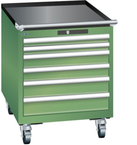 "longDescription": "LISTA Schubladenschrank mobil, Lista Einheit: 27x36E, BxTxH: 564x725x723mm, Schubladen-Nutzfläche BxT: 459x612mm, Anzahl Schubladen: 6, Anzahl Fronthöhen (Tragkraft): 2x 50mm (75kg), 2x 75mm (75kg), 2x100mm (75kg), Schliessart: Code Lock, elektronisches Zahlenschloss mit 10 Ziffern für 4- bis 6-stellige Codes, bis 100 Codes, Farbe Gehäuse: Resedagrün RAL 6011, Farbe Schubladen: Resedagrün RAL 6011. Höchste Stabilität: Gehäuse bis 4t belastbar, Schubladen mit 75 oder 200 kg Tragkraft. Maximale Ausnutzung dank Vollauszug und optimaler Mantelhöhe der Schubladen. Exzellente Schutzeigenschaften gegen Schmutz, Flüssigkeiten und mechanische Beanspruchung durch geschlossenes Gehäuse mit schlag- und abriebfester Oberfläche. Überzeugende Sicherheit: Aushebesicherung gegen Herausfallen der Schubladen und Einzelschubladensperre als Kippschutz. Korrosionsschutz durch Elektrophorese-Tauchlackierung und umweltfreundlichen Pulverlack. Optimale Ordnung und Organisation dank speziellem LISTA-Einteilungsmaterial für jeden Zweck und gelochter, geschlitzter Schubladen. Professionelle Beschriftung mit Beschriftungssoftware LISTA Script und hochklappbarer Griffleiste zum Einlegen der Etiketten. Perfekte Laufruhe durch traversenlos geführten Differenzialauszug. Flexible Anpassungsmöglichkeiten durch vorperforierte Löcher für Tischplatten (Punchout), Rollen, Schubladen, Schliesssysteme für einfaches Um- und Nachrüsten<br>",