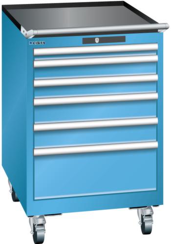 "longDescription": "LISTA Schubladenschrank mobil, Lista Einheit: 27x36E, BxTxH: 564x725x890mm, Schubladen-Nutzfläche BxT: 459x612mm, Anzahl Schubladen: 6, Anzahl Fronthöhen (Tragkraft): 1x50mm (75kg), 2x75mm (75kg), 2x100mm (75kg), 1x200mm (75kg), Schliessart: Key Lock, Standard-Schliessung mit Wechselyzlinder inkl. 2 Schlüsseln mit Schlüsselnummer, Farbe Gehäuse: Lichtblau RAL 5012, Farbe Schubladen: Lichtblau RAL 5012. Höchste Stabilität: Gehäuse bis 4t belastbar, Schubladen mit 75 oder 200 kg Tragkraft. Maximale Ausnutzung dank Vollauszug und optimaler Mantelhöhe der Schubladen. Exzellente Schutzeigenschaften gegen Schmutz, Flüssigkeiten und mechanische Beanspruchung durch geschlossenes Gehäuse mit schlag- und abriebfester Oberfläche. Überzeugende Sicherheit: Aushebesicherung gegen Herausfallen der Schubladen und Einzelschubladensperre als Kippschutz. Korrosionsschutz durch Elektrophorese-Tauchlackierung und umweltfreundlichen Pulverlack. Optimale Ordnung und Organisation dank speziellem LISTA-Einteilungsmaterial für jeden Zweck und gelochter, geschlitzter Schubladen. Professionelle Beschriftung mit Beschriftungssoftware LISTA Script und hochklappbarer Griffleiste zum Einlegen der Etiketten. Perfekte Laufruhe durch traversenlos geführten Differenzialauszug. Flexible Anpassungsmöglichkeiten durch vorperforierte Löcher für Tischplatten (Punchout), Rollen, Schubladen, Schliesssysteme für einfaches Um- und Nachrüsten<br>",