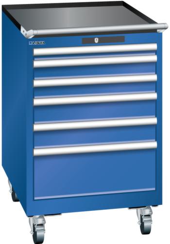 "longDescription": "LISTA Schubladenschrank mobil, Lista Einheit: 27x36E, BxTxH: 564x725x890mm, Schubladen-Nutzfläche BxT: 459x612mm, Anzahl Schubladen: 6, Anzahl Fronthöhen (Tragkraft): 1x50mm (75kg), 2x75mm (75kg), 2x100mm (75kg), 1x200mm (75kg), Schliessart: Key Lock, Standard-Schliessung mit Wechselyzlinder inkl. 2 Schlüsseln mit Schlüsselnummer, Farbe Gehäuse: Signalblau RAL 5005, Farbe Schubladen: Signalblau RAL 5005. Höchste Stabilität: Gehäuse bis 4t belastbar, Schubladen mit 75 oder 200 kg Tragkraft. Maximale Ausnutzung dank Vollauszug und optimaler Mantelhöhe der Schubladen. Exzellente Schutzeigenschaften gegen Schmutz, Flüssigkeiten und mechanische Beanspruchung durch geschlossenes Gehäuse mit schlag- und abriebfester Oberfläche. Überzeugende Sicherheit: Aushebesicherung gegen Herausfallen der Schubladen und Einzelschubladensperre als Kippschutz. Korrosionsschutz durch Elektrophorese-Tauchlackierung und umweltfreundlichen Pulverlack. Optimale Ordnung und Organisation dank speziellem LISTA-Einteilungsmaterial für jeden Zweck und gelochter, geschlitzter Schubladen. Professionelle Beschriftung mit Beschriftungssoftware LISTA Script und hochklappbarer Griffleiste zum Einlegen der Etiketten. Perfekte Laufruhe durch traversenlos geführten Differenzialauszug. Flexible Anpassungsmöglichkeiten durch vorperforierte Löcher für Tischplatten (Punchout), Rollen, Schubladen, Schliesssysteme für einfaches Um- und Nachrüsten<br>",
