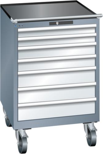 "longDescription": "LISTA Schubladenschrank mobil, Lista Einheit: 36x36E, BxTxH: 717x725x1112mm, Schubladen-Nutzfläche BxT: 612x612mm, Anzahl Schubladen: 7, Anzahl Fronthöhen (Tragkraft): 2x75mm (75kg), 2x100mm (75kg), 2x125mm (75kg), 1x150mm (75kg), Schliessart: Key Lock, Standard-Schliessung mit Wechselyzlinder inkl. 2 Schlüsseln mit Schlüsselnummer, Farbe Gehäuse: Grau metallic NCS S 6502-B, Farbe Schubladen: Lichtgrau RAL 7035. Höchste Stabilität: Gehäuse bis 4t belastbar, Schubladen mit 75 oder 200 kg Tragkraft. Maximale Ausnutzung dank Vollauszug und optimaler Mantelhöhe der Schubladen. Exzellente Schutzeigenschaften gegen Schmutz, Flüssigkeiten und mechanische Beanspruchung durch geschlossenes Gehäuse mit schlag- und abriebfester Oberfläche. Überzeugende Sicherheit: Aushebesicherung gegen Herausfallen der Schubladen und Einzelschubladensperre als Kippschutz. Korrosionsschutz durch Elektrophorese-Tauchlackierung und umweltfreundlichen Pulverlack. Optimale Ordnung und Organisation dank speziellem LISTA-Einteilungsmaterial für jeden Zweck und gelochter, geschlitzter Schubladen. Professionelle Beschriftung mit Beschriftungssoftware LISTA Script und hochklappbarer Griffleiste zum Einlegen der Etiketten. Perfekte Laufruhe durch traversenlos geführten Differenzialauszug. Flexible Anpassungsmöglichkeiten durch vorperforierte Löcher für Tischplatten (Punchout), Rollen, Schubladen, Schliesssysteme für einfaches Um- und Nachrüsten<br>",
