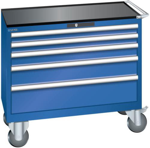 "longDescription": "LISTA Schubladenschrank mobil, Lista Einheit: 54x27E, BxTxH: 1023x572x962mm, Schubladen-Nutzfläche BxT: 918x459mm, Anzahl Schubladen: 5, Anzahl Fronthöhen (Tragkraft): 2x75mm (75kg), 1x100mm (75kg), 1x150mm (75kg), 1x200mm (75kg), Schliessart: Key Lock, Standard-Schliessung mit Wechselyzlinder inkl. 2 Schlüsseln mit Schlüsselnummer, Farbe Gehäuse: Signalblau RAL 5005, Farbe Schubladen: Signalblau RAL 5005. Höchste Stabilität: Gehäuse bis 4t belastbar, Schubladen mit 75 oder 200 kg Tragkraft. Maximale Ausnutzung dank Vollauszug und optimaler Mantelhöhe der Schubladen. Exzellente Schutzeigenschaften gegen Schmutz, Flüssigkeiten und mechanische Beanspruchung durch geschlossenes Gehäuse mit schlag- und abriebfester Oberfläche. Überzeugende Sicherheit: Aushebesicherung gegen Herausfallen der Schubladen und Einzelschubladensperre als Kippschutz. Korrosionsschutz durch Elektrophorese-Tauchlackierung und umweltfreundlichen Pulverlack. Optimale Ordnung und Organisation dank speziellem LISTA-Einteilungsmaterial für jeden Zweck und gelochter, geschlitzter Schubladen. Professionelle Beschriftung mit Beschriftungssoftware LISTA Script und hochklappbarer Griffleiste zum Einlegen der Etiketten. Perfekte Laufruhe durch traversenlos geführten Differenzialauszug. Flexible Anpassungsmöglichkeiten durch vorperforierte Löcher für Tischplatten (Punchout), Rollen, Schubladen, Schliesssysteme für einfaches Um- und Nachrüsten<br>",