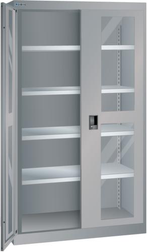 "longDescription": "LISTA Schwerlastschrank, Lista Einheit: 54x27E, BxTxH: 1100x641x1950mm, Anzahl Verstellböden: 4 (160kg), 35mm stark, verzinkt, Schliessart: Key Lock, Standard-Schliessung mit Wechselzylinder inkl. 2 Schlüsseln mit Schlüsselnummer, Türlagerung: Sichtfenster-Flügeltüren mit Drehbolzenlagerung, Öffnungswinkel ca. 115 Grad, Farbe Gehäuse: Taubengrau NCS S 4502-B, Farbe Türen: Taubengrau NCS S 4502-B. Höchste Stabilität durch eine Gehäusetragkraft bis 1500 kg. Hohe Traglasten: 160 kg pro Verstellboden, 200 kg pro Schublade/Auszugbogen. Überzeugende Sicherheit durch Einzelschubladensperre gegen Kippgefahr bei Schwerlastschränken mit Einschwenktüren. Höchster Bedienkomfort durch schnellen Zugriff auf das gesamte Lagergut insbesondere bei einschwenkbaren Türen und leichtgängigen Rollladen mit bedienerfreundlichem Schiebegriff. Sichere Verschliessbarkeit mit Einschwenktüren, Flügeltüren oder Rollladen und intelligenten Schliesssystemen. Exzellente Schutzeigenschaften gegen Schmutz, Flüssigkeiten und mechanische Beanspruchung durch geschlossenes Gehäuse mit schlag- und abriebfester Oberfläche. Jederzeit anpassbar an neues Lagergut durch den flexiblen Ein- und Umbau von Schubladen, Auszugböden und Verstellböden im 25-mm-Raster. Volle Kompatibilität mit LISTA-Schubladenschränken und Schubladenregalen durch einheitliches Mass<br>",