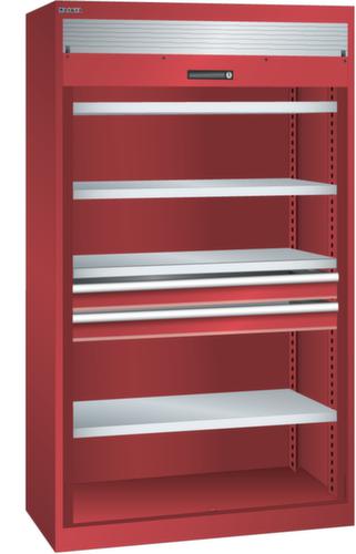 "longDescription": "LISTA Schwerlastschrank, Lista Einheit: 54x27E, BxTxH: 1100x641x1950mm, Anzahl Verstellböden: 4 (160kg), 35mm stark, verzinkt, Anzahl Schubladen: 2x100mm (200kg), Schubladen-Nutzfläche BxT: 918x459mm, Schliessart: Key Lock, Standard-Schliessung mit Wechselzylinder inkl. 2 Schlüsseln mit Schlüsselnummer, Türlagerung: Rollladen aus PVC, ähnlich Lichtgrau RAL 7035, Farbe Gehäuse: Rubinrot RAL 3003, Farbe Schliessleiste: Rubinrot RAL 3003, Farbe Schubladen: Grau NCS S 4502-B. Höchste Stabilität durch eine Gehäusetragkraft bis 1500 kg. Hohe Traglasten: 160 kg pro Verstellboden, 200 kg pro Schublade/Auszugbogen. Überzeugende Sicherheit durch Einzelschubladensperre gegen Kippgefahr bei Schwerlastschränken mit Einschwenktüren. Höchster Bedienkomfort durch schnellen Zugriff auf das gesamte Lagergut insbesondere bei einschwenkbaren Türen und leichtgängigen Rollladen mit bedienerfreundlichem Schiebegriff. Sichere Verschliessbarkeit mit Einschwenktüren, Flügeltüren oder Rollladen und intelligenten Schliesssystemen. Exzellente Schutzeigenschaften gegen Schmutz, Flüssigkeiten und mechanische Beanspruchung durch geschlossenes Gehäuse mit schlag- und abriebfester Oberfläche. Jederzeit anpassbar an neues Lagergut durch den flexiblen Ein- und Umbau von Schubladen, Auszugböden und Verstellböden im 25-mm-Raster. Volle Kompatibilität mit LISTA-Schubladenschränken und Schubladenregalen durch einheitliches Mass<br>",