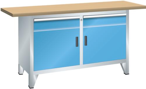 "longDescription": "LISTA Systemwerkbank, BxTxH: 1500x700x840mm, Material: Multiplex, 40mm stark, Max. Belastung: 1000kg, Anzahl Schubladen: 2, Anzahl Fronthöhen (Tragkraft): 2x150mm (70kg), Schubladen-Nutzfläche BxT: 459x510mm, Fächer mit Türen: 2x450mm, Anzahl Fachböden: 2 (50kg), Schliessart: Key Lock, Standard-Schliessung mit Wechselzylinder inkl. 2 Schlüsseln mit Schlüsselnummer, Farbe Gehäuse: Lichtgrau RAL 7035, Farbe Schubladen/Türen: Lichtblau RAL 5012. Höchste Stabilität: Gehäuse bis 1,0 t belastbar, kraftschlüssige Steck- und Schraubverbindungen. Platzsparende und übersichtliche Lagerung in variablen Unterbauten mit leichtgängigen Schubladen mit bis zu 70 kg Tragkraft und vielfältigem Einteilungsmaterial. Sichere Verschliessbarkeit mit Schliesssystem Key Lock zur gleichzeitigen Sicherung aller Schubladen und Türen vor ungewolltem Zugriff<br>",