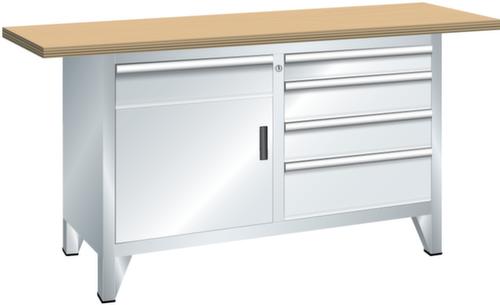 "longDescription": "LISTA Systemwerkbank, BxTxH: 1500x700x840mm, Material: Multiplex, 40mm stark, Max. Belastung: 1000kg, Anzahl Schubladen: 5, Anzahl Fronthöhen (Tragkraft): 1x100mm (70kg), 3x150mm (70kg), 1x200mm (70kg), Schubladen-Nutzfläche BxT: 459x510mm, Fächer mit Türen: 1x450mm, Anzahl Fachböden: 1 (50kg), Schliessart: Key Lock, Standard-Schliessung mit Wechselzylinder inkl. 2 Schlüsseln mit Schlüsselnummer, Farbe Gehäuse: Lichtgrau RAL 7035, Farbe Schubladen/Türen: Lichtgrau RAL 7035. Höchste Stabilität: Gehäuse bis 1,0 t belastbar, kraftschlüssige Steck- und Schraubverbindungen. Platzsparende und übersichtliche Lagerung in variablen Unterbauten mit leichtgängigen Schubladen mit bis zu 70 kg Tragkraft und vielfältigem Einteilungsmaterial. Sichere Verschliessbarkeit mit Schliesssystem Key Lock zur gleichzeitigen Sicherung aller Schubladen und Türen vor ungewolltem Zugriff<br>",