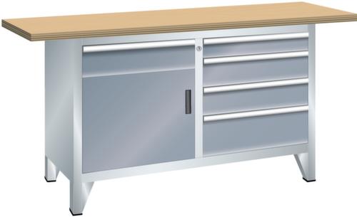 "longDescription": "LISTA Systemwerkbank, BxTxH: 1500x700x840mm, Material: Multiplex, 40mm stark, Max. Belastung: 1000kg, Anzahl Schubladen: 5, Anzahl Fronthöhen (Tragkraft): 1x100mm (70kg), 3x150mm (70kg), 1x200mm (70kg), Schubladen-Nutzfläche BxT: 459x510mm, Fächer mit Türen: 1x450mm, Anzahl Fachböden: 1 (50kg), Schliessart: Key Lock, Standard-Schliessung mit Wechselzylinder inkl. 2 Schlüsseln mit Schlüsselnummer, Farbe Gehäuse: Lichtgrau RAL 7035, Farbe Schubladen/Türen: Grau metallic NCS S 6502-B. Höchste Stabilität: Gehäuse bis 1,0 t belastbar, kraftschlüssige Steck- und Schraubverbindungen. Platzsparende und übersichtliche Lagerung in variablen Unterbauten mit leichtgängigen Schubladen mit bis zu 70 kg Tragkraft und vielfältigem Einteilungsmaterial. Sichere Verschliessbarkeit mit Schliesssystem Key Lock zur gleichzeitigen Sicherung aller Schubladen und Türen vor ungewolltem Zugriff<br>",