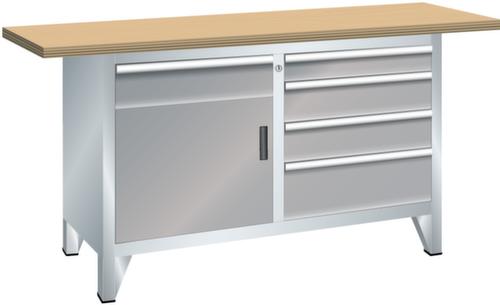"longDescription": "LISTA Systemwerkbank, BxTxH: 1500x700x840mm, Material: Multiplex, 40mm stark, Max. Belastung: 1000kg, Anzahl Schubladen: 5, Anzahl Fronthöhen (Tragkraft): 1x100mm (70kg), 3x150mm (70kg), 1x200mm (70kg), Schubladen-Nutzfläche BxT: 459x510mm, Fächer mit Türen: 1x450mm, Anzahl Fachböden: 1 (50kg), Schliessart: Key Lock, Standard-Schliessung mit Wechselzylinder inkl. 2 Schlüsseln mit Schlüsselnummer, Farbe Gehäuse: Lichtgrau RAL 7035, Farbe Schubladen/Türen: Taubengrau NCS S 4502-B. Höchste Stabilität: Gehäuse bis 1,0 t belastbar, kraftschlüssige Steck- und Schraubverbindungen. Platzsparende und übersichtliche Lagerung in variablen Unterbauten mit leichtgängigen Schubladen mit bis zu 70 kg Tragkraft und vielfältigem Einteilungsmaterial. Sichere Verschliessbarkeit mit Schliesssystem Key Lock zur gleichzeitigen Sicherung aller Schubladen und Türen vor ungewolltem Zugriff<br>",