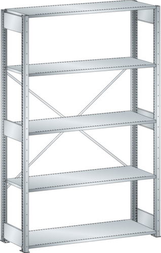 "longDescription": "LISTA Universalregal, BxTxH: 1300x500x2200mm, Anzahl Fachböden: 5 Fachböden geschlitzt, 25mm stark, Ausstattung: Grundfeld mit 2 Regalstützenpaare inkl. 6 Tiefenstreben, 1 Diagonalkreuz verzinkt, Fachlast: 160kg, Max. Feldlast: 2800kg, Farbe: Lichtgrau RAL 7035. Schnelle und einfache Montage durch schraubenlose Steckmontage aller Grundbauteile und Fachböden. Jederzeit anpassbar an neues Lagergut durch den flexiblen Ein- und Umbau von Fachböden, Schubladen und Einzelteilen im 25-mm-Raster. Maximale Regalausnutzung dank einer Kantungshöhe der Fachböden von nur 25 mm für volle Ordnerhöhe<br>",
