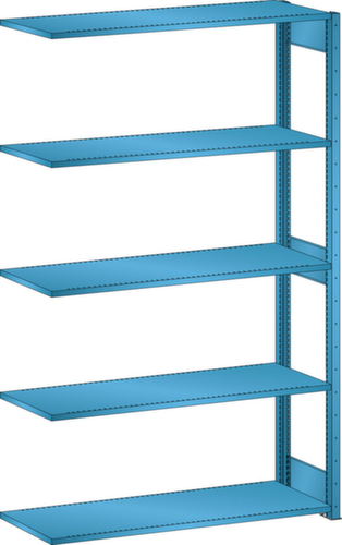 "longDescription": "LISTA Universalregal, BxTxH: 1300x500x2200mm, Anzahl Fachböden: 5 Fachböden geschlitzt, 25mm stark, Ausstattung: Anbaufeld mit 1 Regalstützenpaar inkl. 3 Tiefenstreben, Fachlast: 160kg, Max. Feldlast: 2800kg, Farbe: Lichtblau RAL 5012. Schnelle und einfache Montage durch schraubenlose Steckmontage aller Grundbauteile und Fachböden. Jederzeit anpassbar an neues Lagergut durch den flexiblen Ein- und Umbau von Fachböden, Schubladen und Einzelteilen im 25-mm-Raster. Maximale Regalausnutzung dank einer Kantungshöhe der Fachböden von nur 25 mm für volle Ordnerhöhe<br>",