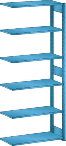 "longDescription": "LISTA Universalregal, BxTxH: 1000x400x2500mm, Anzahl Fachböden: 6 Fachböden geschlitzt, 25mm stark, Ausstattung: Anbaufeld mit 1 Regalstützenpaar inkl. 3 Tiefenstreben, Fachlast: 160kg, Max. Feldlast: 2800kg, Farbe: Lichtblau RAL 5012. Schnelle und einfache Montage durch schraubenlose Steckmontage aller Grundbauteile und Fachböden. Jederzeit anpassbar an neues Lagergut durch den flexiblen Ein- und Umbau von Fachböden, Schubladen und Einzelteilen im 25-mm-Raster. Maximale Regalausnutzung dank einer Kantungshöhe der Fachböden von nur 25 mm für volle Ordnerhöhe<br>",